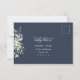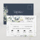 This wedding event response RSVP enclosure postcard with 4 meal choice options features an elegant modern minimalist style with watercolor greenery foliage leaves arrangements and beautiful calligraphy and clean and serif typography fonts on a navy blue background. The simplicity and clean design of this wedding RSVP response enclosure card works well with all wedding themes and definitely a great addition to your wedding. Just customize the couple's names, date, 4 meal choice options, and other info in a few easy steps and personalize it to give it a nice personal touch.