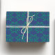 Navy Blue & Green Loch Ness Monster Damask Wrapping Paper Sheets