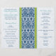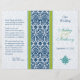 The text on this navy blue, spring green, and teal damask wedding program is fully customizable. It is intended to be folded down the middle. To change the text, use the personalize option. For more extensive changes, such as changes to the font, font color, font size, or text layout, use the customize it option. Once your text is finalized, if you need to move it around a bit, you can do that using the customize it option. This damask special occasion program is currently customized as a wedding program, but it would work well as a program for other special occasions as well. Really, this would even make a really nice church bulletin with changes to the text. Let your imagination lead you.