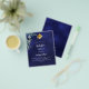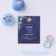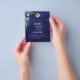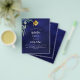 A navy blue background, decorated with greenery. The blue color is uneven. Personalize and add a name and party details.