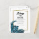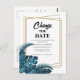 Navy blue greenery change the date postcard. Change the date postcard with blue leaves.