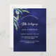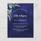 A navy blue background, decorated with greenery. The blue color is uneven. Personalize and add your name and party details.