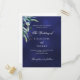 A modern, stylish invitation for a wedding. A navy blue background, decorated with greenery. The blue color is uneven. Personalize and add your names and details.