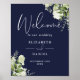 Navy Blue Greenery Floral Wedding Welcome Sign