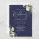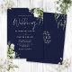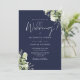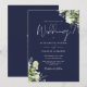 Navy Blue Greenery Leaves Monogram Wedding Invitation