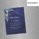 A navy blue background, decorated with greenery. The blue color is uneven. Personalize and add your name and party details.