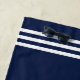Lake house beach towel in navy blue and white with a nautical monogram with an anchor, greenery, and rope. Add your initial and your family name and year established. Beach house towel in navy and white with an anchor monogram framed by greenery, and your family name framed by rope.