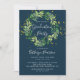 Navy Blue Greenery Wreath Gold Glitter Graduation Invitation