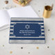 This navy blue and gray striped Bar Mitzvah guest book is sure to impress your guests and it will be a lovely keepsake of this milestone event. The front and back cover has a navy blue and silvery grey textured look striped pattern that runs horizontally across the guest book. The front cover has a navy blue and white trimmed ticket-shaped text area that coordinates with the invitation and stationery suite shown below. It is personalized with the name of the Bar Mitzvah and the date and there is a large grey Star of David at the top of the text that can be removed if you prefer. If you need any additional matching items, please email your request to niteowlstudio@gmail.com or use the Zazzle chat feature to get in touch.