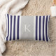 Navy Blue Grey Stripes Monogram Lumbar Pillow