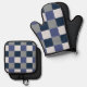 Navy Blue Grey White Checkerboard Oven Mitt & Pot Holder Set