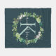NAVY BLUE GREY WREATH FOLIAGE WATERCOLOR MONOGRAM FLEECE BLANKET