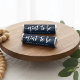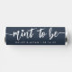 Cute wedding favor design with a minty pun features "mint to be" in white handwritten script lettering with a heart dotting the "i," on a navy blue background. Personalize with your names and wedding date. Sweet play on words makes a unique and memorable wedding favor!