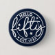 Navy Blue Hello Fifty 50th Birthday Button
