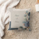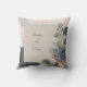 Make a statement with the sophisticated elegance of this luxury blue hydrangea throw pillow design. The artwork features a stunning blend of cool-toned botanicals and abstract elements. The focal point is a large cluster of navy and dusty blue hydrangea flowers and velvety leaves, contrasting beautifully with the warm taupe-gray central square. The backdrop is a contemporary collage of abstract geometric blocks in shades of deep navy and dark teal, with a subtle speckled texture and a faded circular shape in the top left. The rich, muted color palette and layered design give the piece an opulent, modern aesthetic. This pillow is perfect for anchoring a chic, moody wedding lounge, adding a touch of contemporary luxury to a formal winter reception, or setting an elevated tone for a modern bridal shower. It also serves beautifully as a unique, artistic accent for a designer living room or a high-end office space. This item's versatile design makes it an excellent choice for businesses, other celebratory events, or interior decorators looking for romantic floral décor.