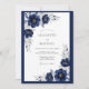Deep navy blue anemones take center stage in this sophisticated botanical design. Accented by silver-gray foliage and a bold dark border, the composition offers a cool and refined aesthetic. The white backdrop highlights the intricate watercolor details of the petals and leaves, creating a classic atmosphere for a cold-weather event.