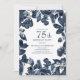 Navy Blue Indigo Leaves 75th Birthday Invitation