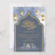 This sophisticated Iftar invitation combines a deep navy alcohol ink background with a bold gold-trimmed arch. Decorated with hanging stars and lanterns over a subtle mosque skyline, it offers a modern and premium feel for your Ramadan event.