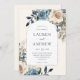 Navy Blue Ivory Floral Silver Arch Wedding Invitation