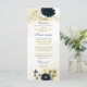 Navy blue ivory gold floral wedding menu