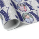 Navy blue JOY and snowflakes two photo Christmas Wrapping Paper