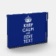 Your personalized Keep Calm saying on a classy navy blue decor. A personalized Keep Calm style saying on a one of a kind gift. Humorous or whimsical try on your creative words on two editable lines of text. Remember to use CAPITAL letters for best results.