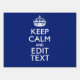 Your personalized Keep Calm saying on a classy navy blue decor. A personalized Keep Calm style saying on a one of a kind gift. Humorous or whimsical try on your creative words on two editable lines of text. Remember to use CAPITAL letters for best results.