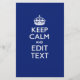 Your personalized Keep Calm saying on a bold navy blue decor. A personalized Keep Calm style saying on a one of a kind gift. Humorous or whimsical try on your creative words on two editable lines of text. Remember to use CAPITAL letters for best results.