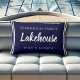 Navy Blue Lakehouse Family name Map Corinates Lum Lumbar Pillow