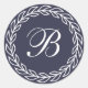 Navy Blue Laurel Wreath with Custom Monogram Classic Round Sticker