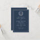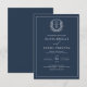 Navy Blue Leafy Crest Monogram Elegant Wedding Invitation
