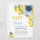 Navy Blue Lemon Citrus Floral Baby Shower Invite
