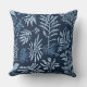 Navy Blue Light Blue Botanical Print Throw Pillow