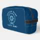 Personalize your toiletry bag with your name and the yacht name in light blue on a navy blue background.