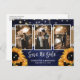Navy Blue Lights Sunflower 3 Photo Save The Date Announcement Postcard