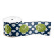 Navy Blue & Lime Green Polka Dots Custom Monogram Satin Ribbon