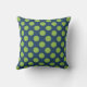 Navy Blue Lime Green Polka Dots Throw Pillow