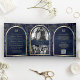 Navy Blue Line Art Gold Arch Butterfly Wedding Tri-Fold Invitation