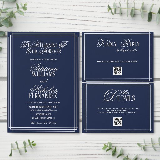 Navy Blue Luxury Wedding RSVP Card
