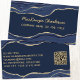 Navy Blue Marble Agate Gold Glitter QR Code Business Card