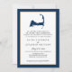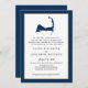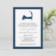 Navy Blue Mashpee Cape Cod Map Gold Heart Wedding Invitation