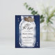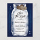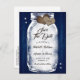 Navy Blue Mason Jar Wood String Lights Wedding Announcement Postcard