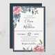 Navy Blue Mauve Botanical Wedding Invitation