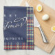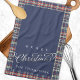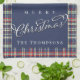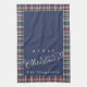 Navy Blue Merry Christmas Plaid Custom Kitchen Towel