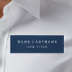 Navy Blue Foil Metallic Stainless Steel Minimalist Business Name Tag with white lettered script signature typography for the monogram. The Foil Metal Business Name Tag can be customized with your name. Please contact the designer for customized matching items.