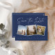Navy Blue Minimal Photo Collage Wedding Announcement Postcard