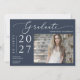 Navy Blue Minimal Script School Graduation Photo Invitation