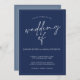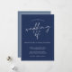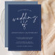 Navy Blue Minimal Script Wedding Invitation. This classic wedding invitation features crisp white script on a deep navy background, framed with neutral borders. Elegant and timeless, it’s ideal for formal, evening, or nautical-inspired weddings.