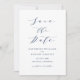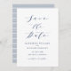 Announce your wedding date to family and friend with this customizable save the date card. It features minimalist script and simple typography with stripes pattern for the back. The colors on this save the date announcement are white and navy blue, perfect for any wedding theme. Personalize by adding name, date, venue and other event details.