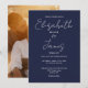 Navy Blue Minimalist Script Photo Wedding Invitation